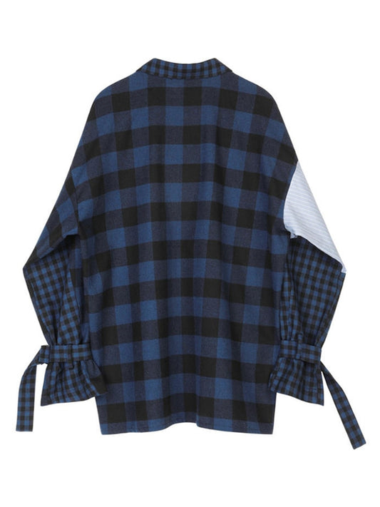 [EAM] Women Dark Blue Striped Big Size Blouse New Lapel Long Sleeve Loose Fit Shirt Fashion Tide Spring Autumn 2022 1Z254