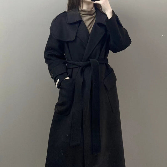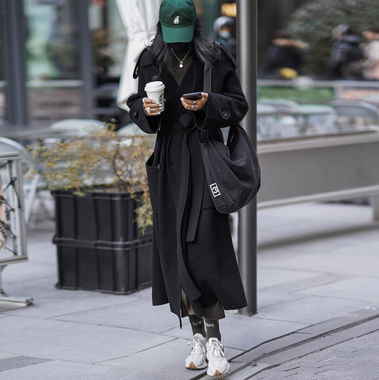 Knitted Trench Long Coat Women Autumn Winter Black Khaki Jacket Outerwear Thick Coat Jackets Y2k Maxi Streetwear Windbreaker