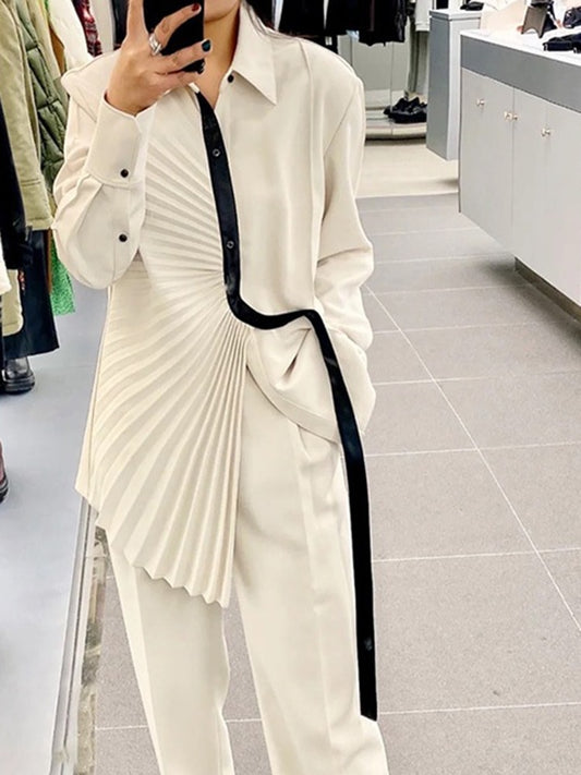 Women's blouse in apricot color, with an irregular fit and front pleatsong Sleeve Loose Fit Shirt Fashion Spring Autumn 2022 1DE8946