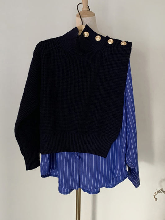 TWOTWINSTYLE Korean Patchwork Print Striped Sweater For Women Turtleneck Long Sleeve Casual Sweaters Female Fashion Clothes New