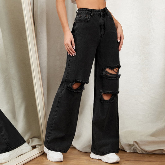 [EAM] High Waist Black Linen Split Joint Long Wide Leg Trousers New Loose Fit Pants Women Fashion Tide Spring Autumn 2022 1DA613