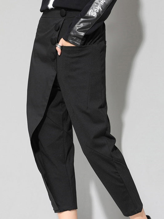 [EAM] 2022 New Spring Fashion Tide Black High Waist Elastic Pockets Patchwork Casual Woman Full Length Harem Pants SA155