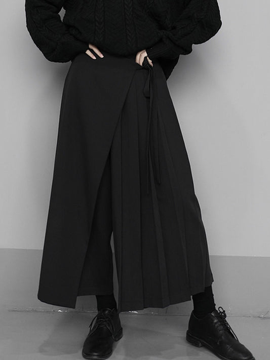 [EAM] High Elastic Waist Black Pleated Split Wide Leg Trousers New Loose Fit Pants Women Fashion Tide Spring Autumn 2022 1N666