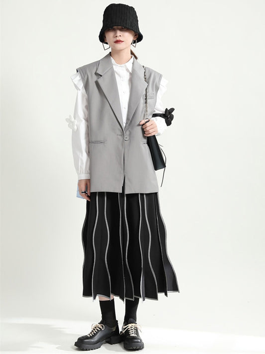 [EAM] High Elastic Waist Black Irregular Color-block Casual Half-body Skirt Women Fashion Tide New Spring Autumn 2022 1DE6163