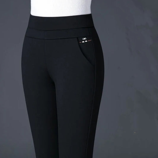 For Middle Aged Women, Elastic Waist Casual Straight Pants, for Spring and Autum / Female Trousers / Lady Stripe Pencil Pants / Black Pants