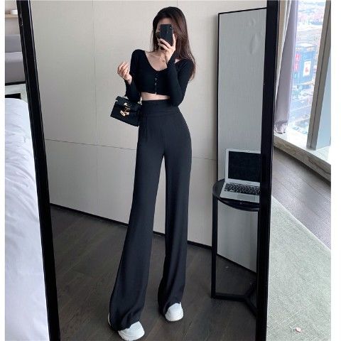 Summer Women's Suit Pants 2023 Sexy Straight Trousers Womens Fluid Black Ice Silk High Waist Korean Style Fashion Elegant Casual
