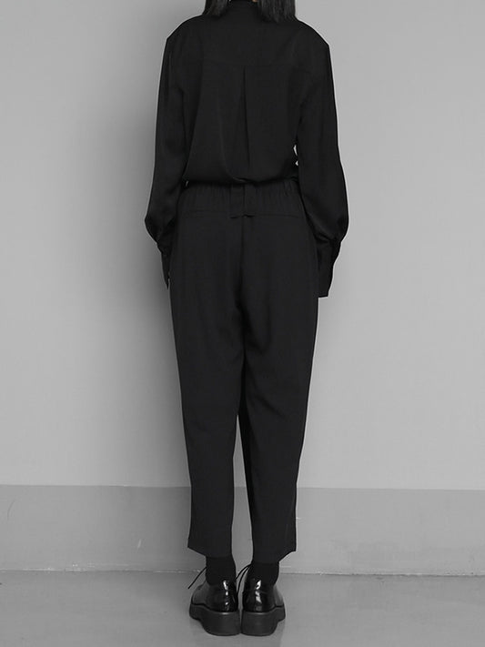 [EAM] 2022 New Spring Black Loose High Waist Flat Elastic Waist Women Fashion Tide Wide Leg Ankle-length Pants OA870